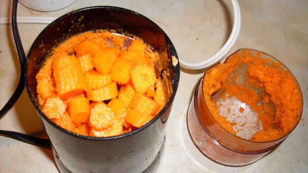 1 1/2 c finamente rallado zanahorias (aproximadamente 6 zanahorias y puede utilizar el procesador de alimentos para el resultado liso más - los niños pueden ser exigentes cuando ven hilos de zanahoria en la torta, para procesarla hasta súper suave hacer el truco!)