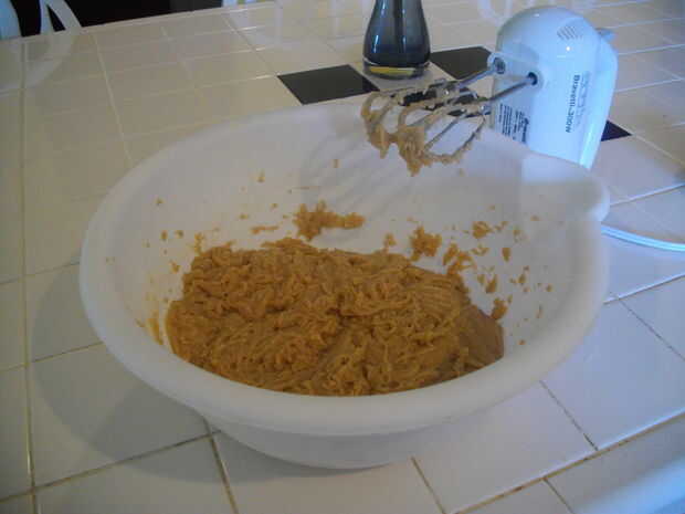 Mezclar los ingredientes secos y húmedos hasta que se incorporen. No mezcla. La masa será algo seca en este momento.