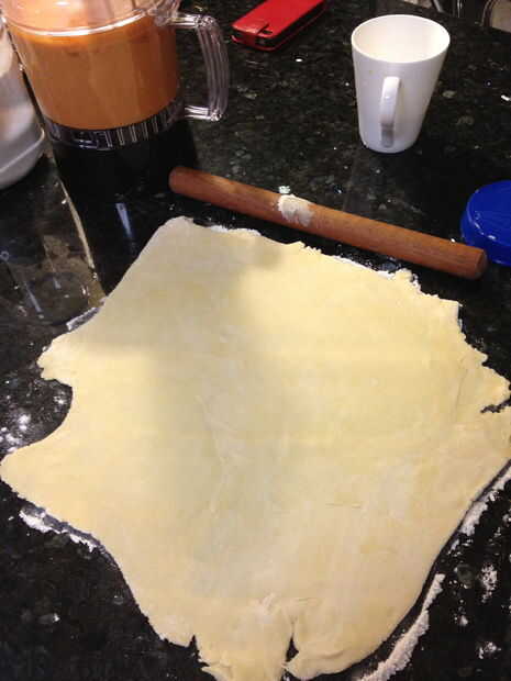 En un intestino, pellizque la mantequilla, harina y agua para formar la masa. Refrigere por al menos 1 hora.
