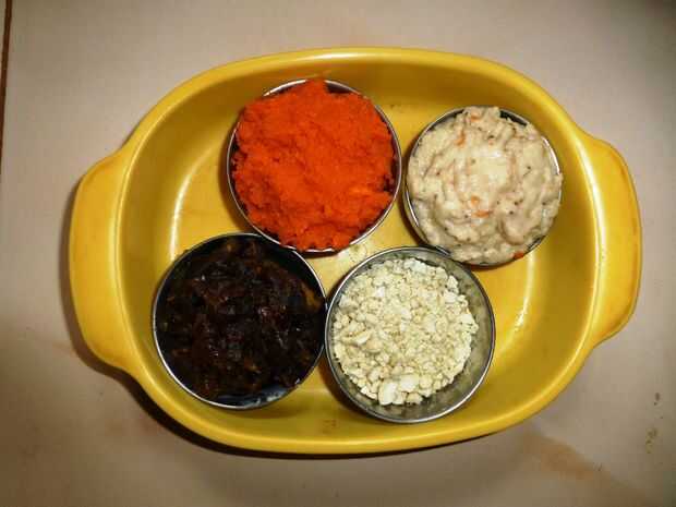 estos son magdalenas sabrosas llenas de nutritivas frutas y verduras! De hecho, aproximadamente la mitad del volumen de cada muffin es pura fruta y puré de vegetal. Mi hijo de 3 años se comió dos inmediatamente... que es una buena taza de 1/4 que s