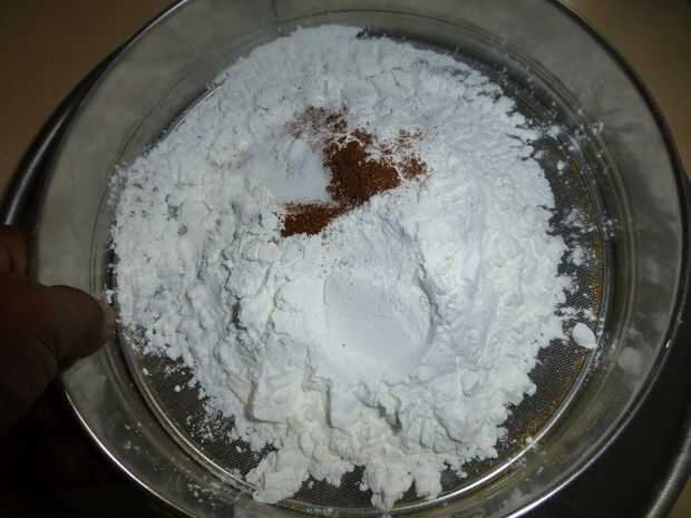 • Mezcle harina de maíz, sal, polvo de hornear y polvo de la especia por separado