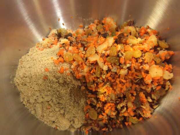 * Añadir, mezclar las zanahorias, piña y las nueces picadas hasta que estén bien mezclados.