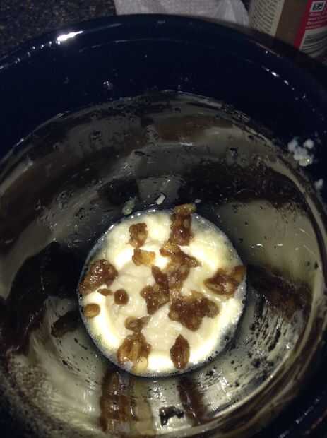 Grasa ahora una taza y llenar con mezclas aproximadamente la mitad de lo completo y espolvorea en 2/3 del streusel. Ahora Vierta la mezcla restante en la parte superior. Por último, espolvorear el resto del streusel.