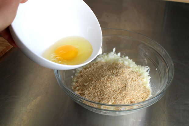 Añadir 1-3 huevos a la mezcla. Te recomiendo huevos para mantener la "torta" de desmenuzarse.