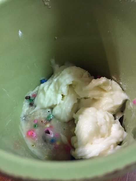 Disfruta tu pastel! Usted puede recargar con escarcha (como yo) o helado si quieres. ---- Sugerencias/consejos: Utilice un poco de extracto de almendra (hago esto casi cada hora) Puede utilizar cualquier tipo de leche para esto No usar nonperials ya que tienden a sangrar (recomiendo jimmies!)