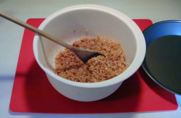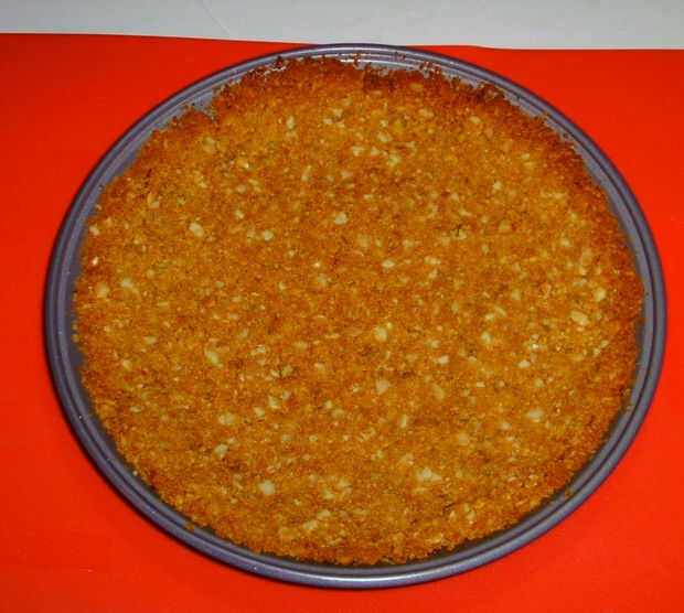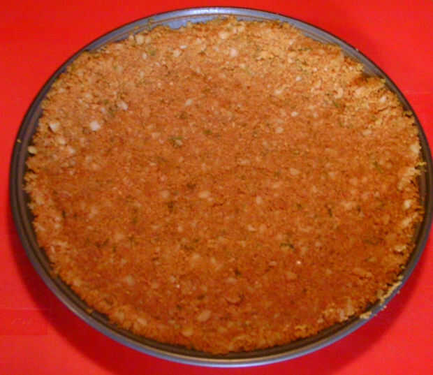 Mezclar bien todos los ingredientes de la corteza. Presione en la parte inferior y los lados de una tartera de 9 pulgadas.
