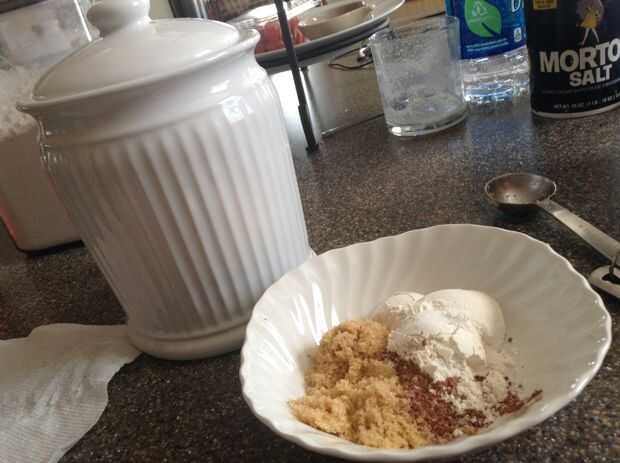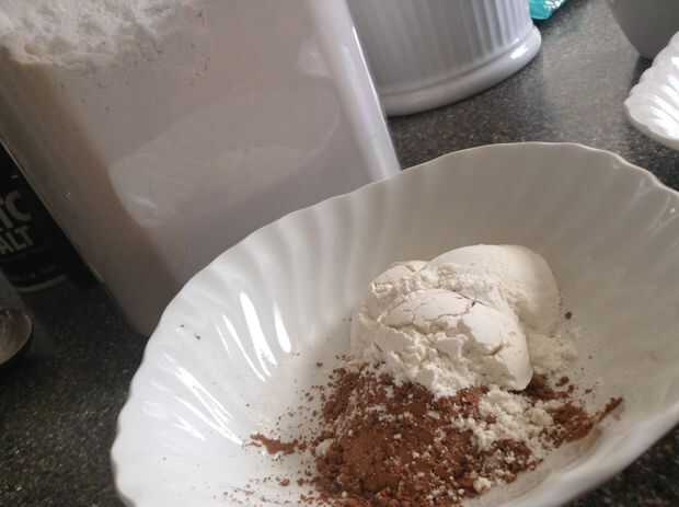 Muy bien, así que este paso es sencillo, sólo hay que poner juntos todos los ingredientes secos, midiendo cuidadosamente cada elemento.