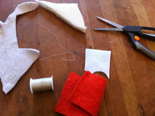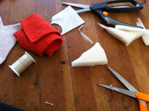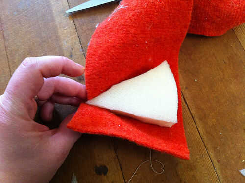 He cosido el punto de la cuña, luego resultó la derecha fieltro y había cosido a la espuma.