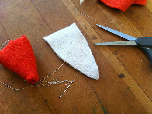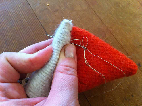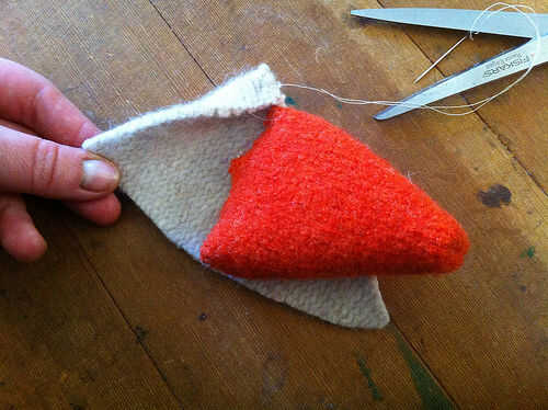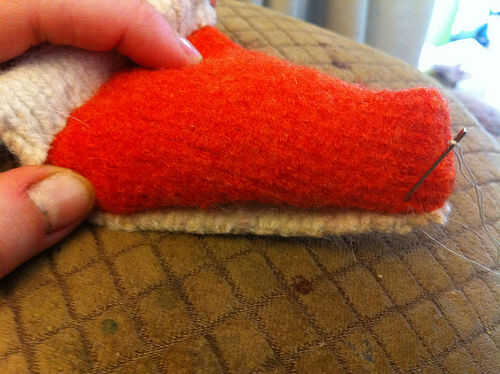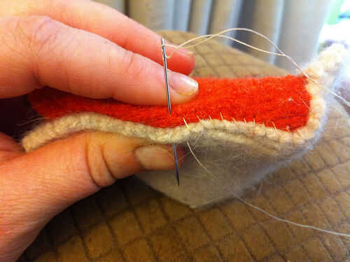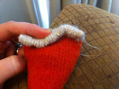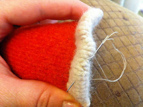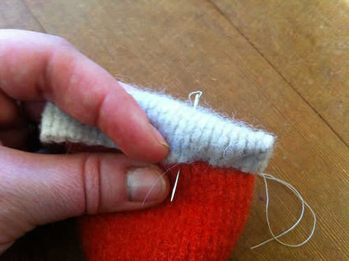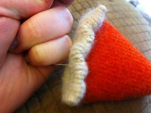 Plegar el borde de la espalda y me cosió la corteza para el relleno. Cuando la corteza estaba todo Unido, había cosido un par de puntadas en un lado de la corteza posterior donde se pega encima de la tarta, lo empujó a través de la corteza un poco poco, tirando firmemente y había cosido a puntadas par otro. Lo hice a lo largo de la parte posterior para hacer la corteza puckered levemente. Usted puede verme tirando del hilo apretado en la segunda a la última imagen para recoger un poco la corteza y ondulado/puckered a base de tarta real.