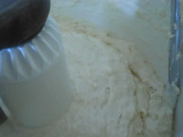 Agregar el restante harina C. ½ en un momento hasta que la masa se desprenda de la parte.  Amasar durante 5 minutos.