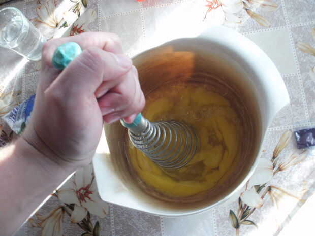 Este paso requiere fuerza solamente áspero (agitación). Generalmente el orden de los ingredientes es como en las fotos pero nunca había mezclado en otro orden y no puedo decir que está mal.