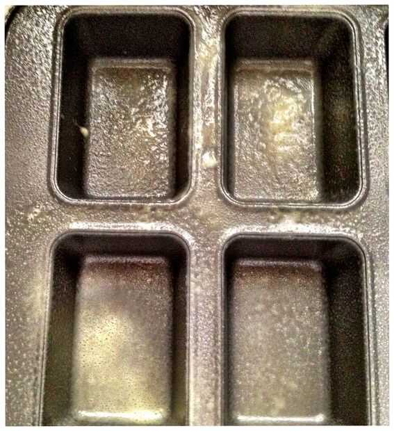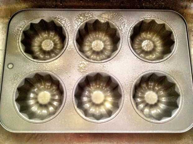 Para mi mini tortas utilicé una cacerola de Bundt mini 6-porción y una porción de 8 mini pan pan (masa llena solo la mitad, o 4, pancitos), también puede usar una cacerola de Bundt de 12 tazas. Grasa y harina pan bien, utilicé un spray para hornear que contiene harina.