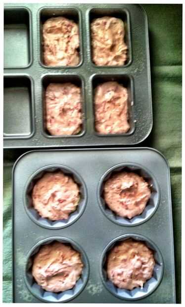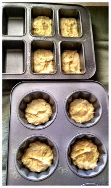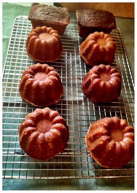 Mi mini tortas al horno 35-40 minutos. (Llené mi mini Bundt pan ligeramente más completa de que debo tener, les desea 2/3 completo. Si terminas con fondos más grandes como que sólo lo hizo, recortar los bordes cuando les saque de la sartén, los desechos son delicia del chef!)