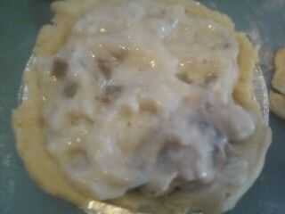 Si había dejado sobre la salsa, esto sería grande. Por desgracia, mi salsa era comido en acción de gracias. Así que hice lo mejor, almacén comprado salsa. He usado salsa de crema de hongos. Sólo necesitaba unas 2 cucharadas para la bandeja de tarta más pequeño. Era un poco de grosor, por lo que había mezclado con agua en un recipiente. Luego la añadí a la tarta.