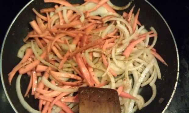 En una sartén grande, combinar la mantequilla sin sal, mezcla de especias vegetales, zanahorias y Onions.Saute en lo alto por unos minutos.