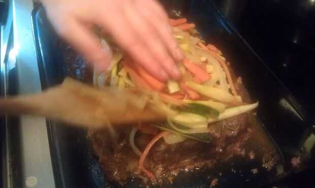 Quitar relleno de horno (si tienes Nota lo ha hecho) de carne escurrir y eliminar grasa.