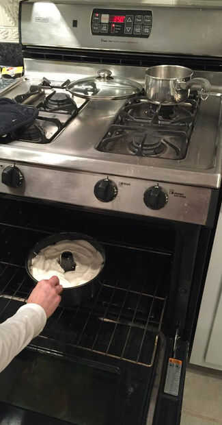 Ahora tomo un cuchillo de la torta de metal y cortar a través de la humedad para eliminar cualquier grandes bolsas de aire. Vierta en pasteles.