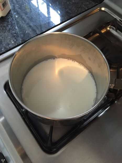 Vierte la leche en la cacerola y calor lentamente.