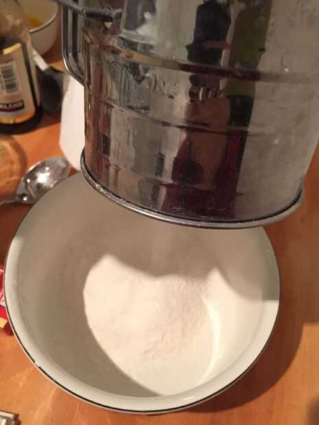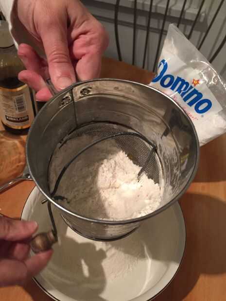 Tomar 1 1/2 tazas de azúcar en polvo, tamizar dos veces en un recipiente.
