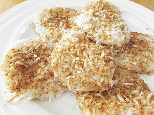 Recuerdo cuando mi tía hacerlo para nosotros con coco fresco rallado y masa de arroz glutinoso de tierra del mercado. Es una merienda muy popular en las Filipinas con sólo cuatro ingredientes y muy fácil de hacer.