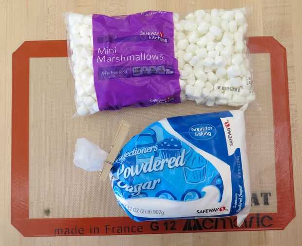 - Malvaviscos + azúcar = Marshmallow Fondant (hice un lote con una bolsa entera de mini malvaviscos y que estaba demasiado por la cantidad que hice. Sólo necesitaba la mitad.) Además, usé blanco porque quería que estos pasteles de boda, pero se vuelven locos y probar diferentes colores y sabores. Por qué no hacer Gelatina Marshmallow Fondant o Fondant de malvavisco de Chocolate!