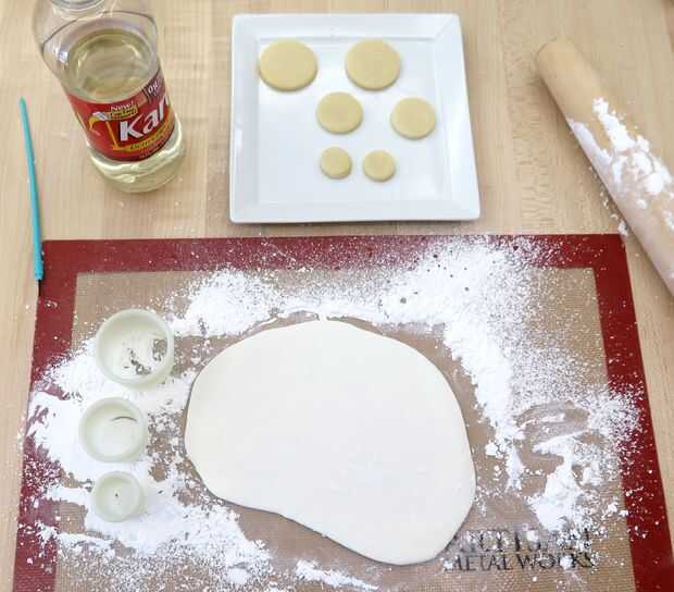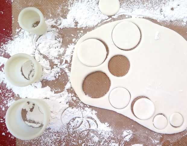 Una vez lo tienes en marcha, utilice el mismo cortadores de la galleta de antes y cortar círculos de fondant para poner en tus cookies.