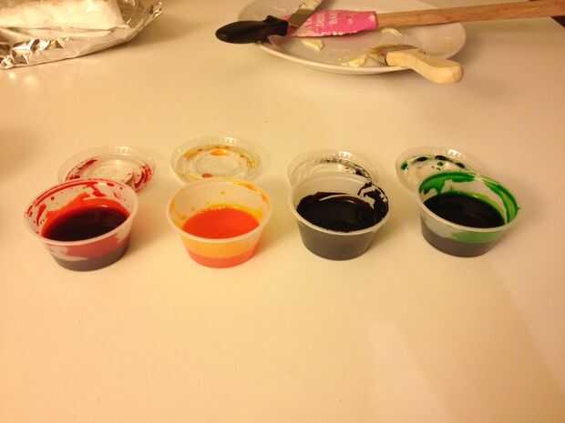 * Antes de realizar los apoyos de fondant, color el resto de la crema con colorante verde lima.