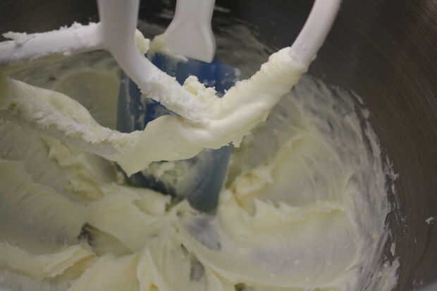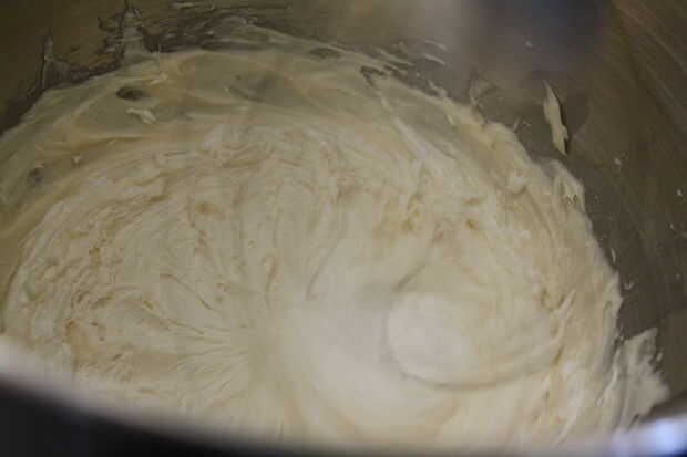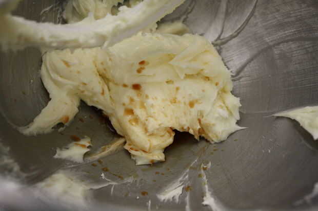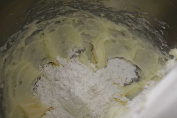 Su 6 cucharadas de mantequilla reblandecida y el azúcar en polvo y crema lo. Luego se mezclan en una pizca de sal y la vainilla.