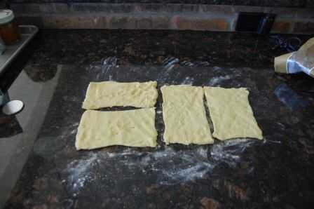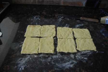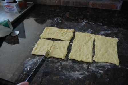 Para comenzar, es muy importante a la harina la superficie de trabajo. OK, así que tienes tu media luna rollos que obviamente abres. Una vez que lo tienes abierto, hay un lugar que permite romper la masa por la mitad, si no sólo se cortan por la mitad. Entonces usted puede rodar hacia fuera para su piso. Sin embargo cuando ruedas lo que se convertirá en dos triángulos. Con los dos triángulos dispuestos, tomar los bordes y les aprete para obtener un rectángulo (espero que tiene sentido). También, cuando empiezas a estirar la masa, hay un punto que casi se cae, haciendo que dividir por la mitad. Desea que esto suceda. Haces esto para cada mitad. Ahora, debe tener cuatro rectángulos grandes. Ahora, simplemente cortar los rectángulos por la mitad. Tienes tus plazas! Si este había hecho no tiene sentido (que apenas sucedió a mí!) espero que ayudar los cuadros.