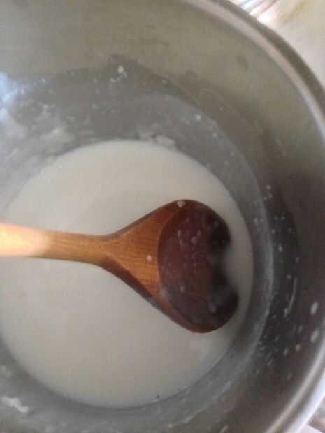 En el tiempo hacer la salsa blanca por mezclando un poco de leche y harina de maíz, caliente la leche restante y añadir el líquido de la harina de maíz a la leche y revolver un poco hasta que espese ligeramente.