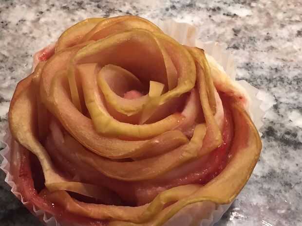 Se hace este postre en forma de rosa hermosa de nuestra masa de hojaldre fácil, llena de manzanas y ciruelas.Obtener el americano medidas (onzas).Masa de hojaldre fácilHarina - 250 gramosMantequilla - 200 gramosYema de huevo - 1Sal - 1/4 cucharaditav
