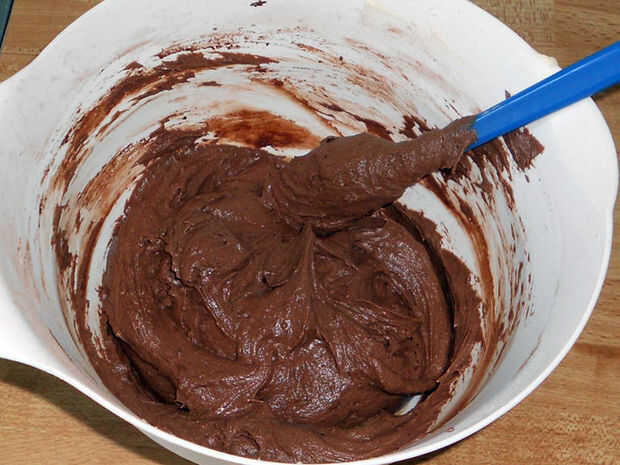 5. Añadir la mezcla de cacao a la mezcla de crema y mezclar hasta combinar sólo.