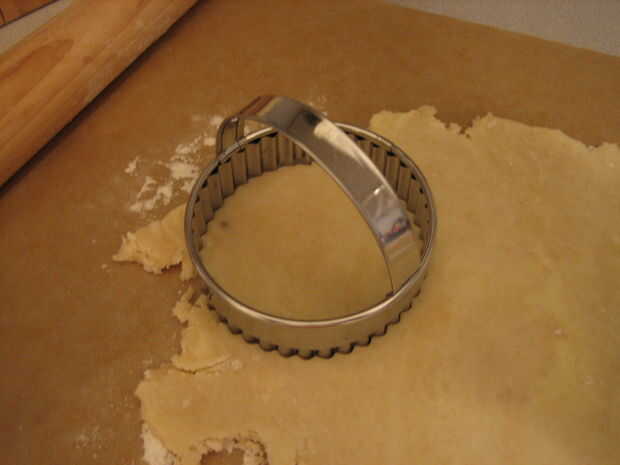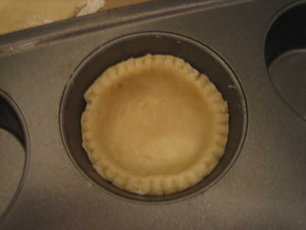 4. Cortar redondos utilizando la herramienta de corte y colocar cada uno en la Copa de un molde de muffin, exprimirlos abajo en los bordes suavemente