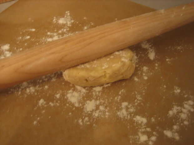2. Espolvorear harina sobre una hoja de pergamino y polvo rodillo así