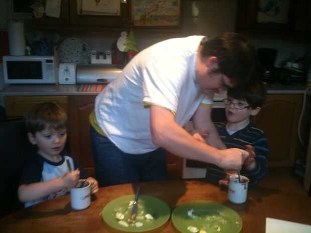harina, azúcar impalpable, cucharadas de cacao sin azúcar y agua