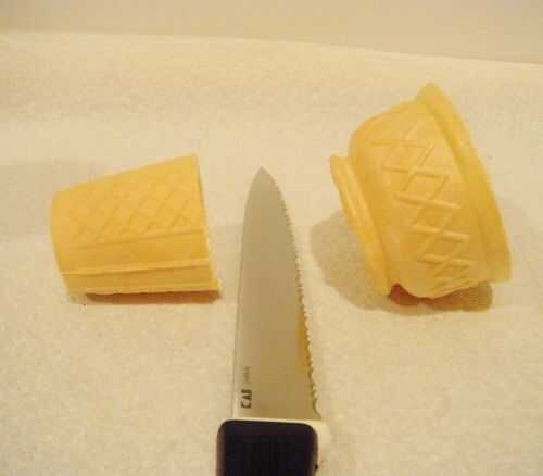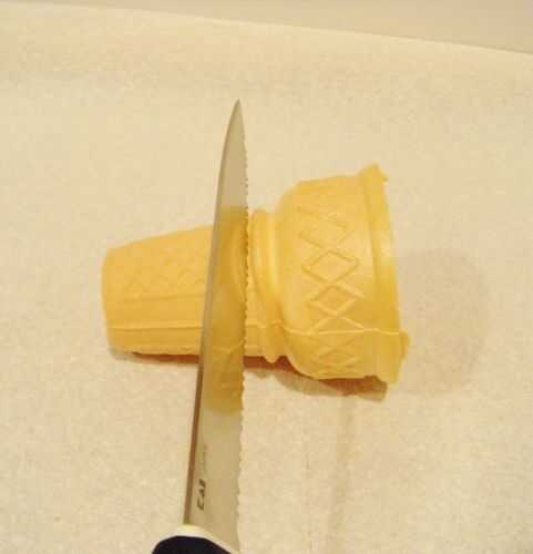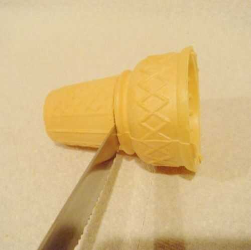 2. Coloque con cuidado el cuchillo donde la Copa, se encuentra con el cono y suavemente "serrar" la parte del cono.