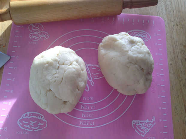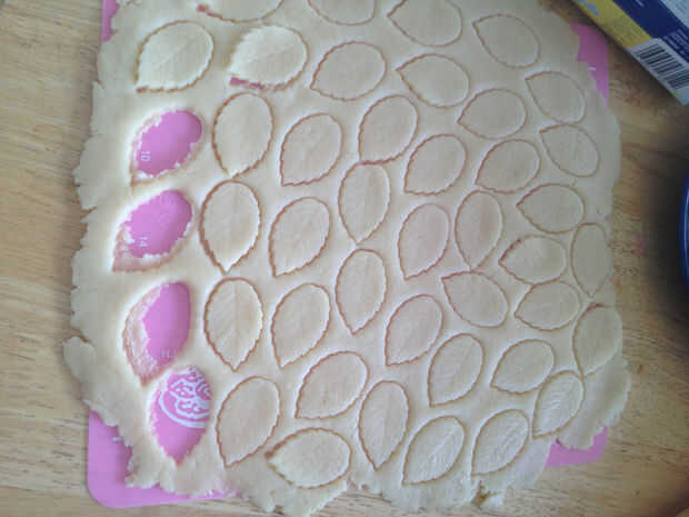 Rodillo plana la otra masa y usando el cortador de la hoja, hacer cortes