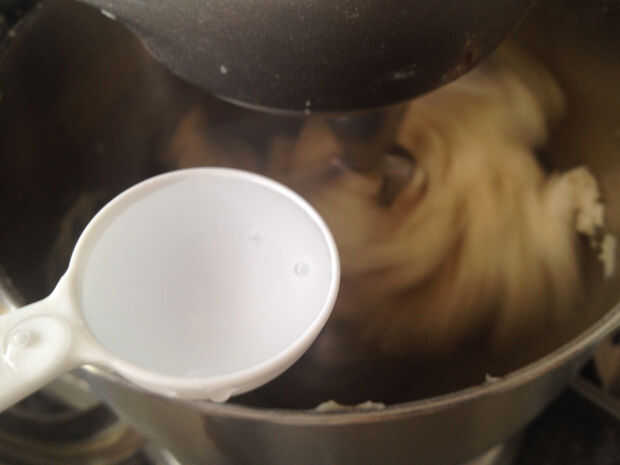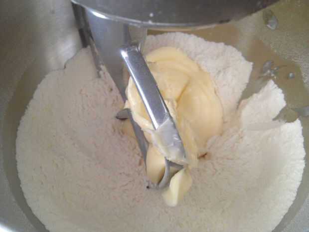Usando una batidora eléctrica con el accesorio de pala, batir la margarina hasta que esponje y luego batir baja velocidad los ingredientes secos hasta que gruesos