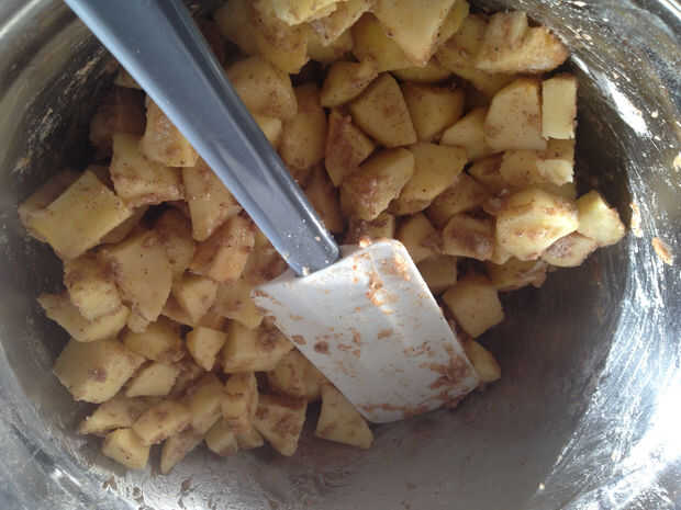 5-6 manzanas, tarta o dulce, si lo prefiere, pelar, cortar en rebanadas de cuartos pequeños