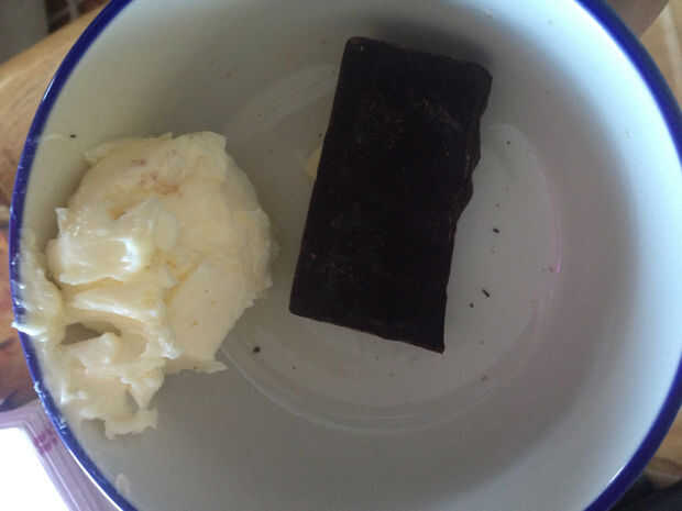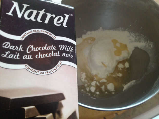 En una cacerola, sobre fuego lento, derretir el chocolate y la margarina, añada leche, agua y huevos
