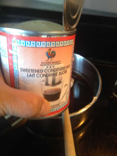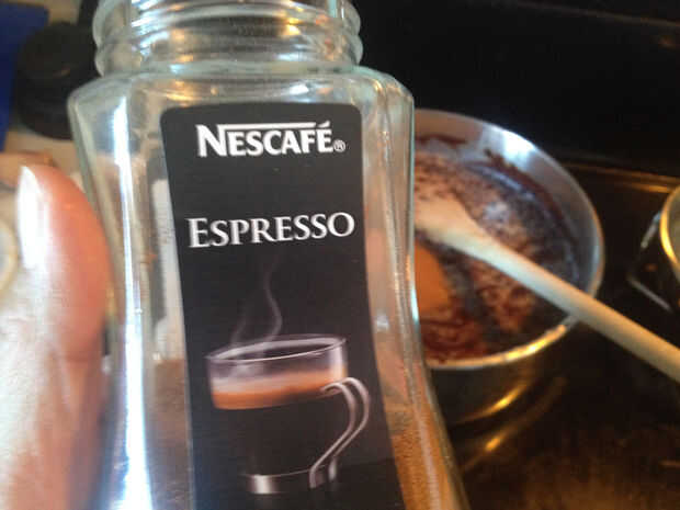 Sacar del fuego y agregue el licor, la esencia, gránulos de café y sal