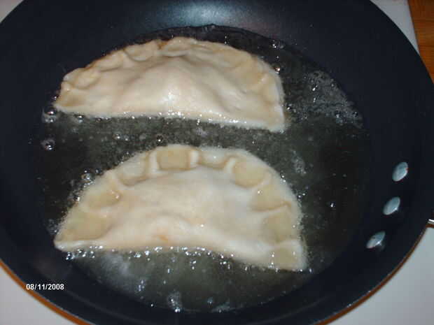 Una vez caliente, suavemente ponga sus pies en el aceite. Vuelta cuando estén doradas. Cuando se hacen, colocarlos en un plato cubierto de un montón de toallas de papel, y absorba las tapas apagado con más toallas de papel, para eliminar el exceso de aceite.