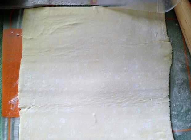 Desenrolle y estire la masa sobre una superficie ligeramente enharinada, alisando los pliegues en una hoja incluso.
