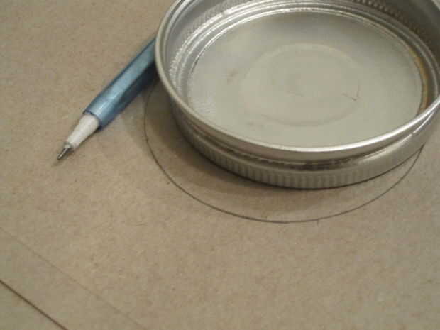 Para cortar el círculo, coloque la tapa en la tarjeta donde quieras el diseño. El lado de la llanta debe estar hacia arriba. Hay una foto de esto. Utilice un lápiz muy afilado y trace el borde de la tapa a la tapa como sea posible y luego recortar.