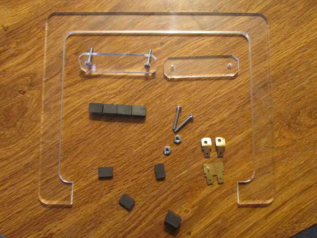 Mi plástico ya estaba el ancho correcto, 7/8", por lo que puse en mi mordaza entre dos pedazos de cartón y cortar con una sierra para metales. Longitud para que vas 3 1/4", así que cortarlo un poco largo y luego sacar y moler a la longitud exacta con una esmeriladora de banco. También, moler las esquinas en un ángulo de cuarenta y cinco grados hasta que han convertido las esquinas en partes que son 1/4" de largo.