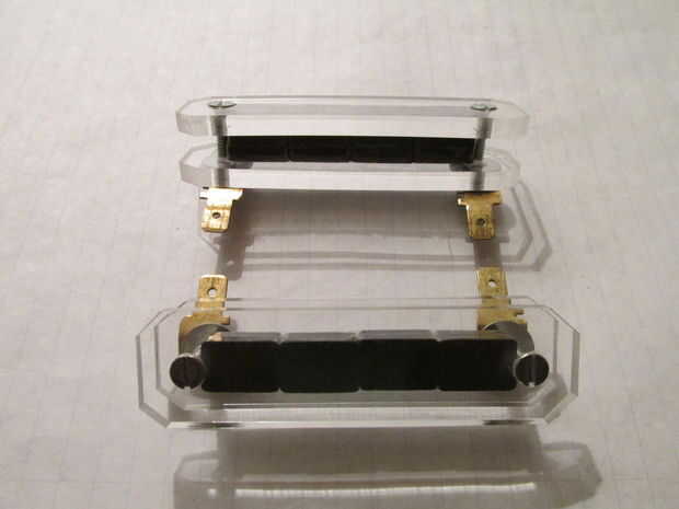 Una dificultad es la transición de los pequeños cables de la bobina de la recolección a los cables de conexión más grandes. La mejor manera que encontré es hacer tipo de post en la recolección sí mismo ambos puede soldarse a. He encontrado algunas piezas de bronce de un microondas que conectores diapositiva conectar a. En mi mordaza perforados agujeros en ellas, cortarlas por la mitad y había atornillada en la parte inferior de mi camioneta.