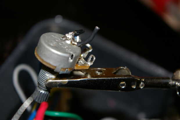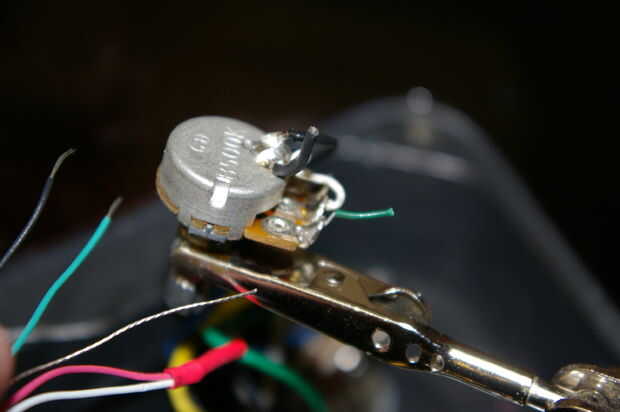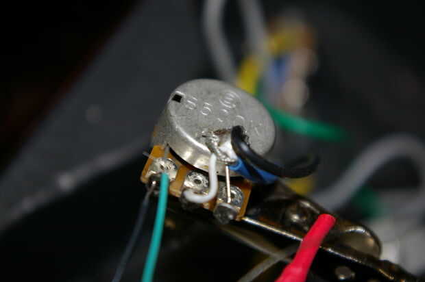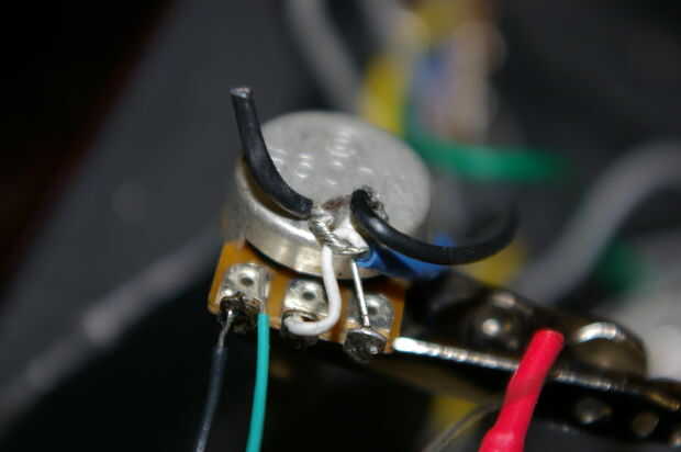 I-suelde el cable verde viejo en el estirón del pote y luego la soldadura sobre el cable negro nuevo.