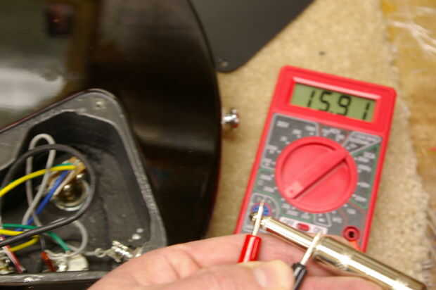 Pero antes de que ajustad, sugiero hacer una prueba más de la realidad y verificar tienes las pastillas correcta en la posición correcta - usar un cable de guitarra y un multímetro. Antes de que usted me grita sobre el uso del cable de la guitarra - solo ten en cuenta que no estoy haciendo mediciones críticas en las pastillas, solo estoy haciendo que cada uno esté en el lugar correcto.
