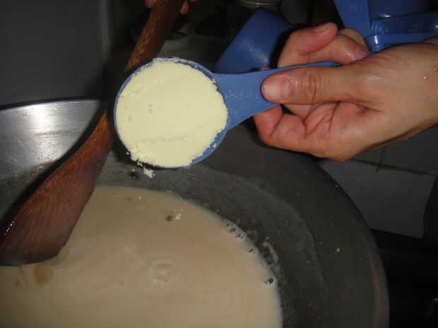 Medir 1/3 taza de leche en polvo y agregar a la mezcla hirvienda.