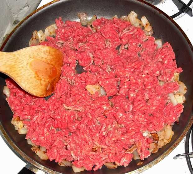 Comenzar cortando para arriba algunas cebollas y conseguirlos en una sartén bien caliente, cocinar hasta que el bonito y caramelizada. Una vez que las cebollas han vuelto un buen oro marrón/negro añadir en tu carne molida cruda y cocinar hasta que se doren. Agregue un poco agrietada pimienta u otro condimento al gusto.